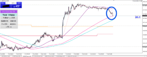 利確pointはピンクSMAあたりまではいくんじゃないかな、それまで行かなくても20PISPくらいはおちそう