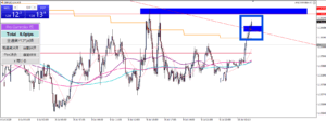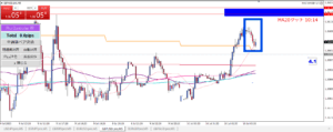 5分足に関しては下落なんだけど、水平線やトレンドライン的に引きで見ると上昇