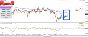 ①ローソク足は75SMAより下側+紫SMAでもたついてる