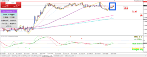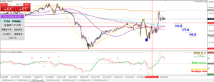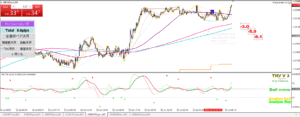 ➡高値どまりで75SMA紫も↴抜けて20SMAも抜けてるから・・・けどJPYが下がってる+UP中だから注意