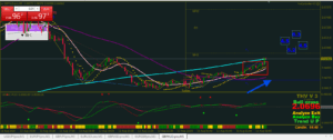 その後少し1時間足ミドルを超えたけど、再度下落、目線は↑だけど、どうなるかなぁ
