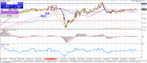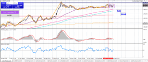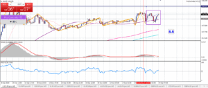 1時間足も基本大きな変化はないけど今は上昇中、少し勢い弱くなったかな?上昇してるけど上に邪魔な線は多い