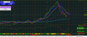 一回跳ね上がって今はFirstもSlowも赤でクロスして下落中
