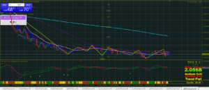 1時間足だとまだ1時間足ミドルよりも下、Firstは緑だけど横ばいって感じ