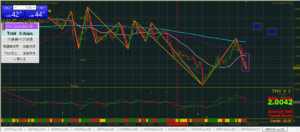 1時間足ミドルまで下がったな