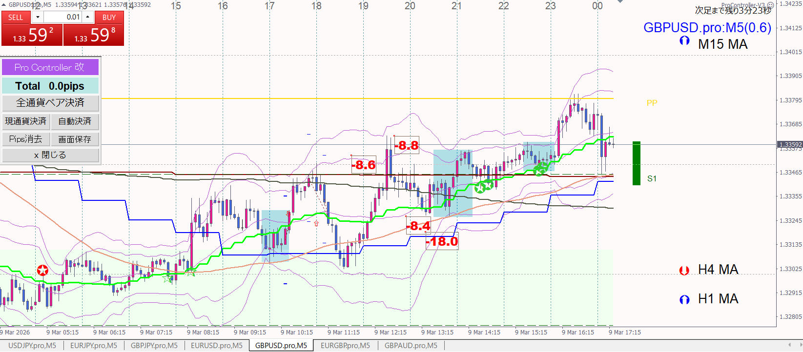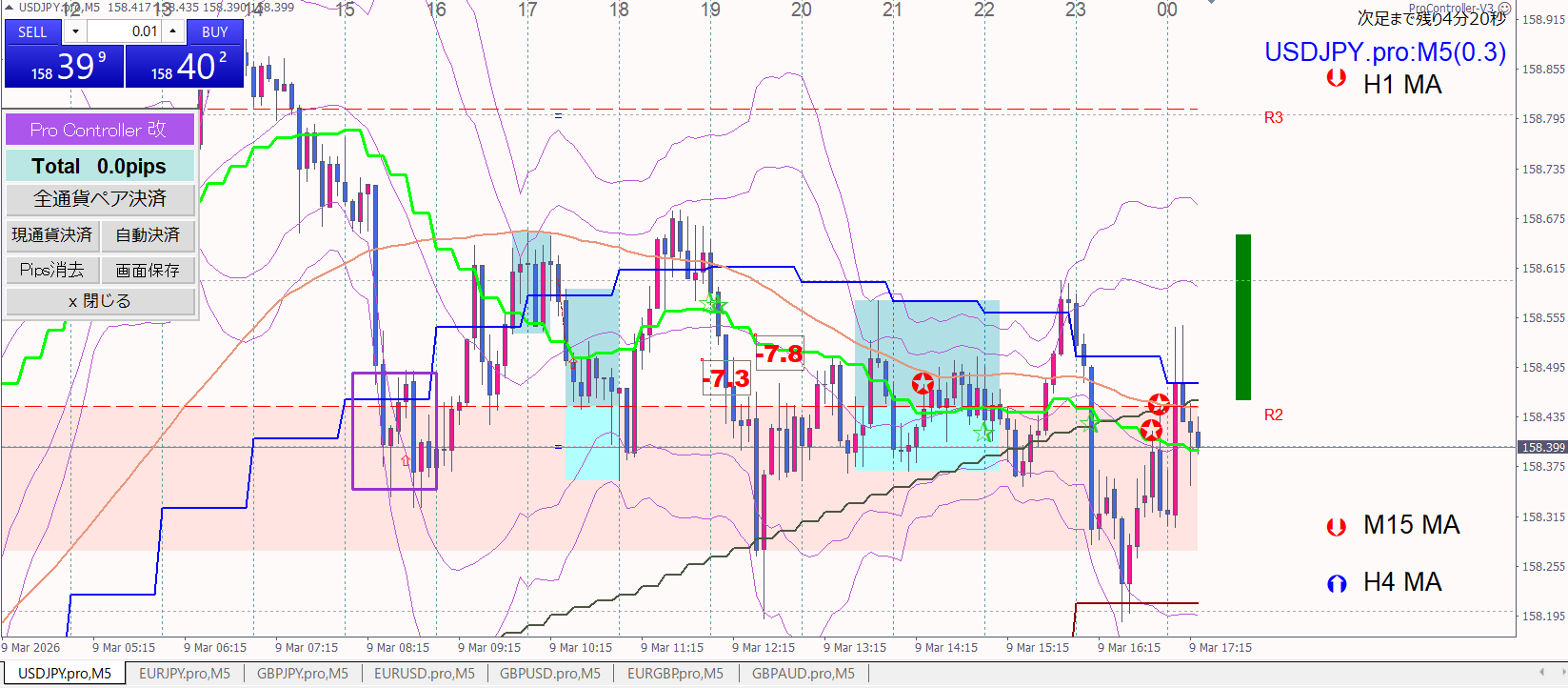 懸念点は①15分足MAは逆向き②事案早かったか・・どうなるかな?