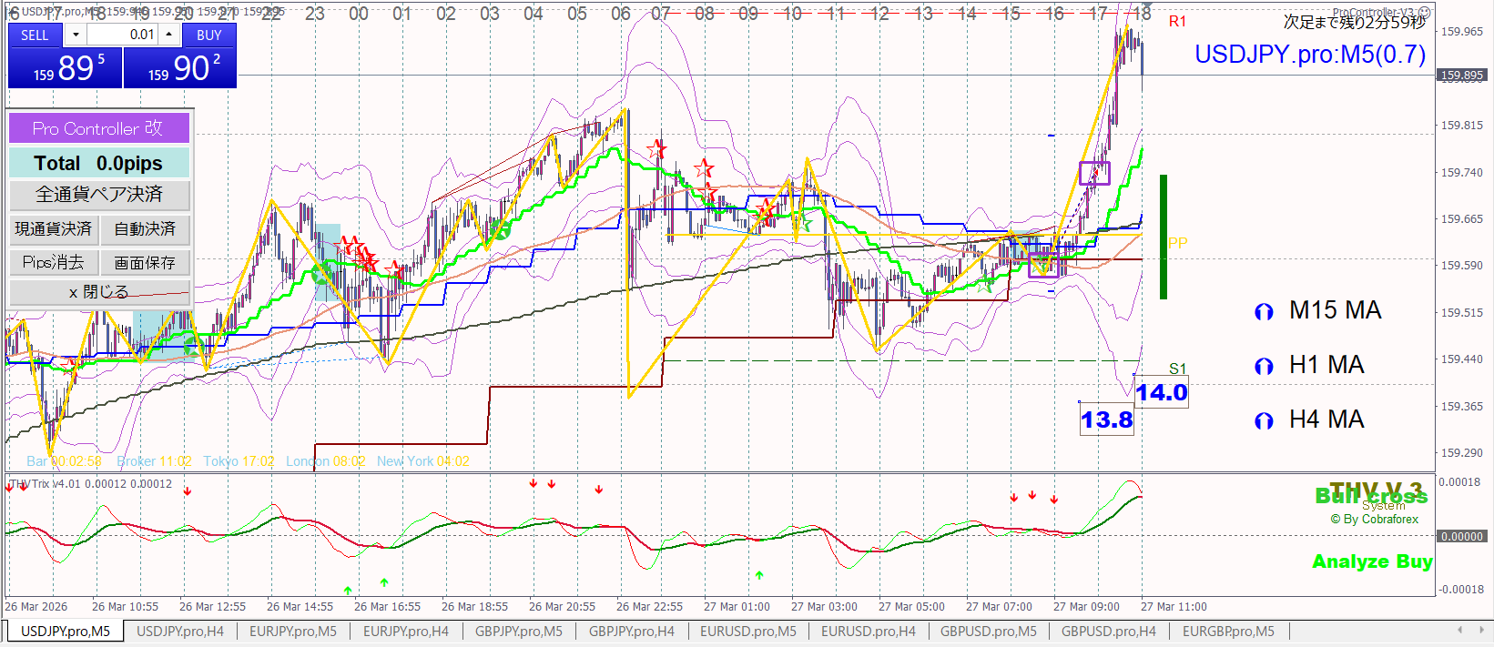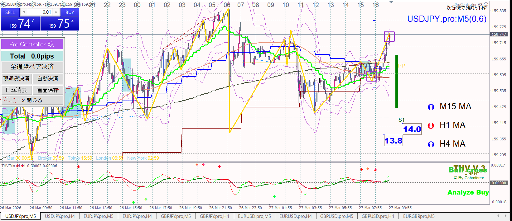 10時FXismの4時間配信ではEURJPYとGBPJPYロングでパーフェクトオーダー